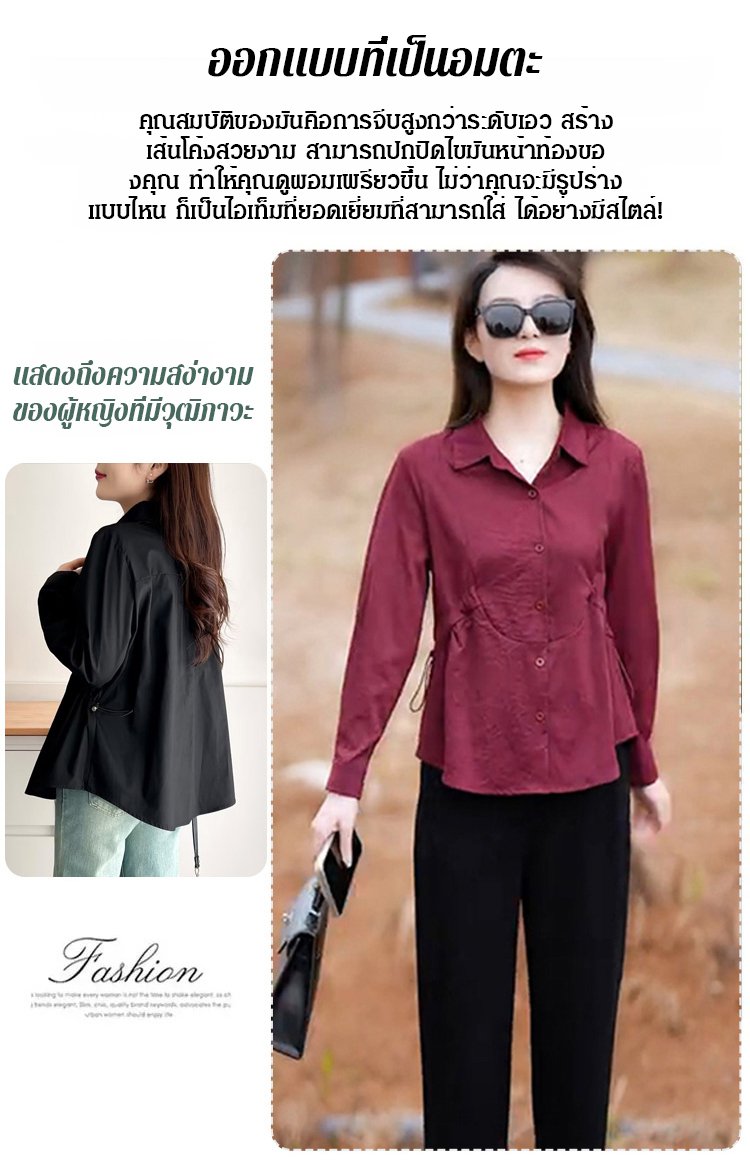 เสื้อเชิ้ตดีไซน์เรียบง่ายพร้อมเชือกรูด